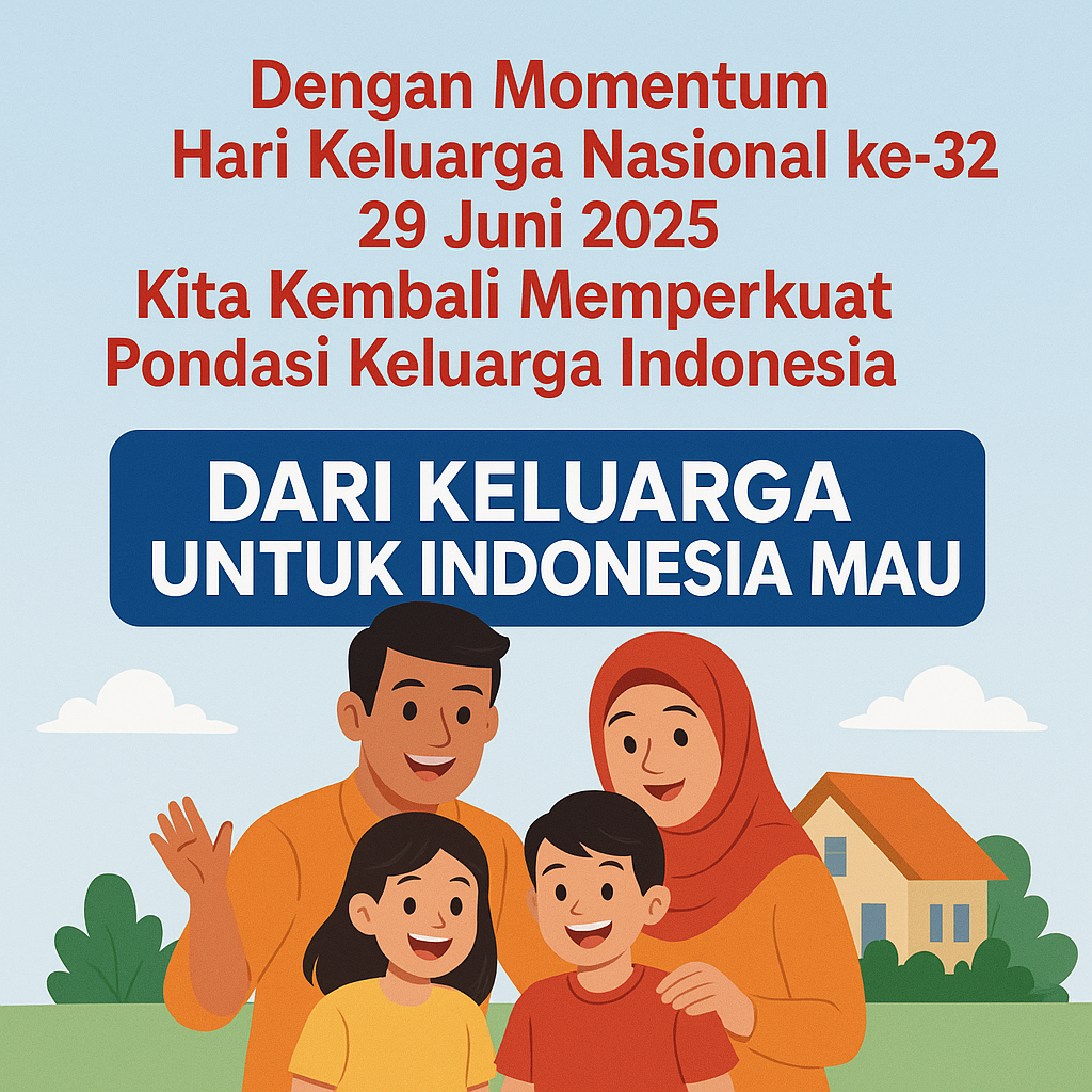 “Dengan Momentum Hari Keluarga Nassional ke~32, 29 Juni 2025, Kita Kembali Memperkuat Pondasi Keluarga Indonesia DARI KELUARGA UNTUK INDONESIA MAJU”.