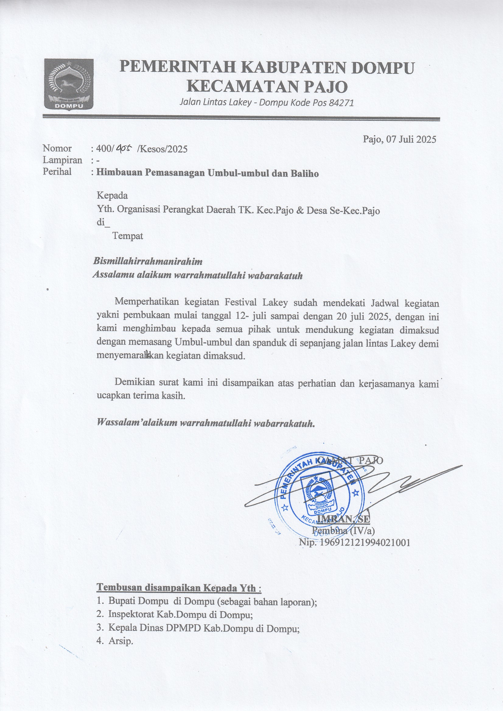 <> Kepala Dinas Pemnberdayaan Masyarakat dan Pemerintahan Desa (PMPD) Kabupaten Dompu